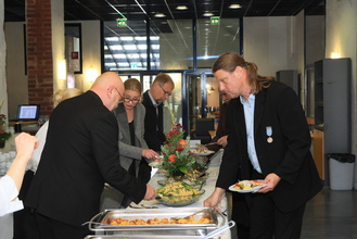 ![]() | ![]() Ari Pietarinen ja Tommi Lehtinen Kymenlaakson Liikunnasta, edessä Nina Tasa ja Juha Heikkilä Vehkalahden Veikoista |